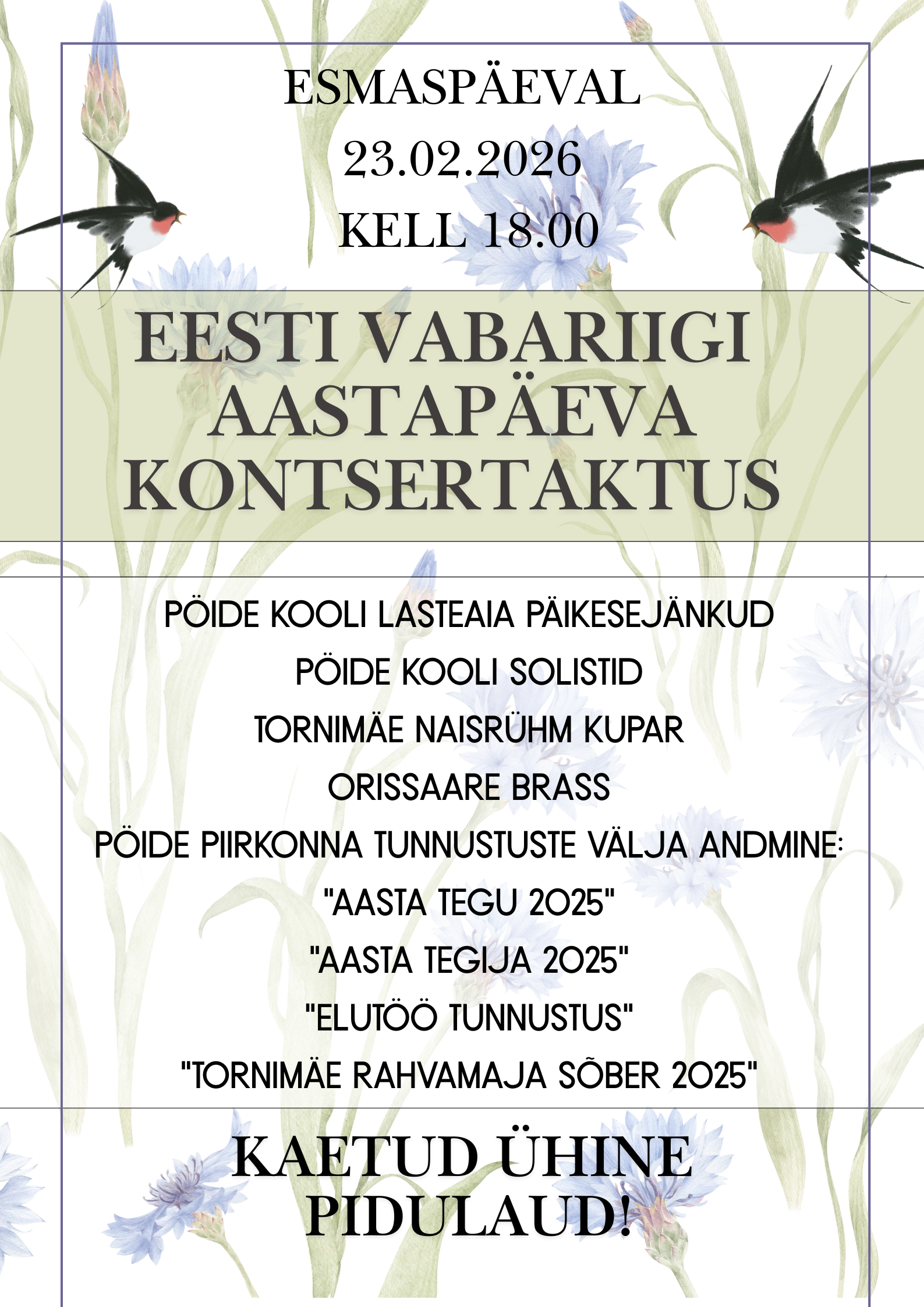 esmaspäeval 23.02 kell 18.00!
